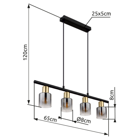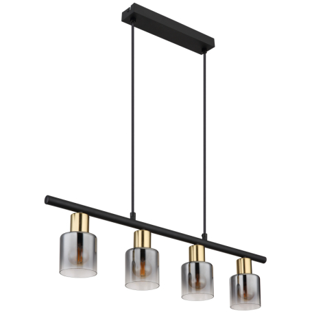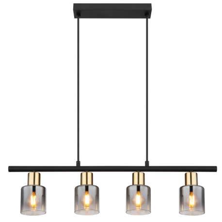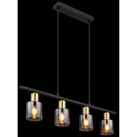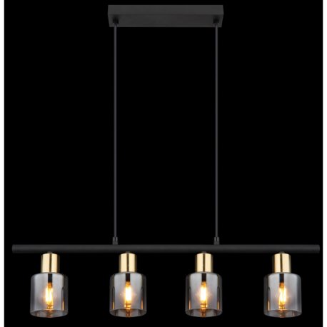 GL-54310-4H Závěsné svítidlo, kov černý, kov zlatý matný, sklo kouřové, průhledné, kabel PVC černý, možnost zkrácení výšky, Dx?xV:650x80x1200mm, bez žárovek 4xE14, max. 25W 230V -