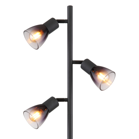 GL-54312-3S Stojací svítidlo, kov černý matný, sklo kouřové a průhledné, kabel PVC černý, vyínač na kabelu, Dx?xV:300x220x1610mm, délka kabelu 1800mm, bez žárovek 3xE14, max. 25W 230V -