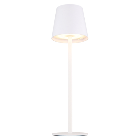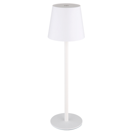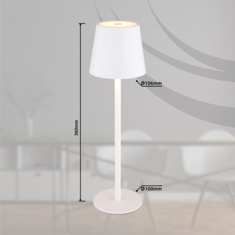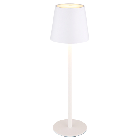 GL-58438W  Stolní svítidlo, kov a plast bílý, kabel PVC bílý, dotykové zapnutí/vypnutí, plynulý dotykový stmívač, paměť, aku CR18650 1800mAh 3,7V, IP44, ø:106mm, H:360mm, V:36cm nebo 24cm, včetně LED 3W 230V, zdroj 300lm, výstup 130lm, 3000K -