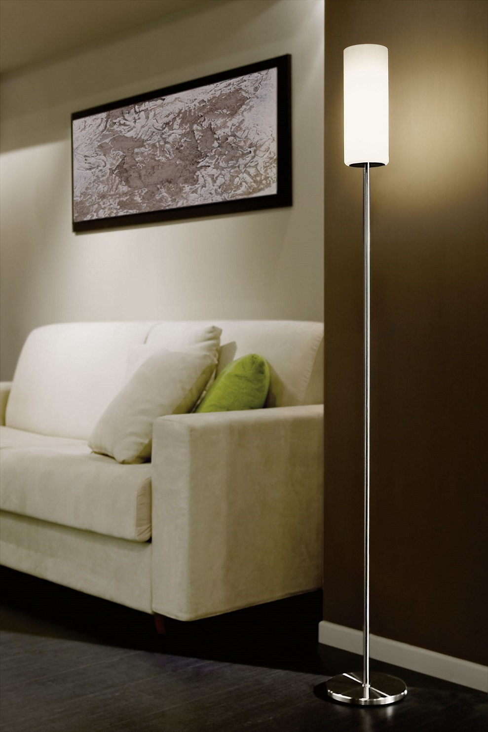 Die zeitlosen Troy 3-Lampen bestehen aus Stahl in der Farbe Mattnickel und haben Glasschirme in der Farbe Weiß Matt. Es besteht die Möglichkeit, sie mit smarten LED-Leuchtmitteln auszustatten und diese per Smartphone oder Tablet zu dimmen oder die Temperatur und Farbe der Beleuchtung zu verändern. Durch den Einsatz von LED-Leuchtmitteln lässt sich zudem der Stromverbrauch deutlich reduzieren.