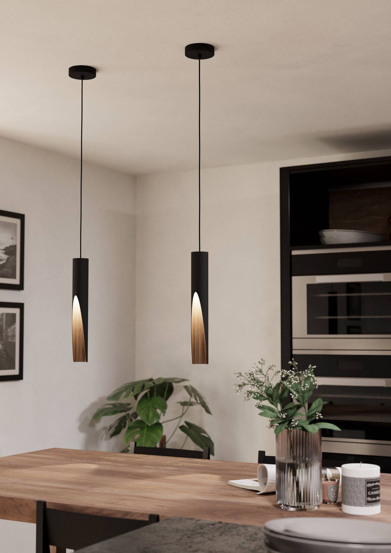 Interessante Verarbeitung dieser Designerleuchte. Passend für alle Räume Ihrer modernen Inneneinrichtung. Die Lampe besteht aus schwarzem Stahl und braunem Holz. Es lässt sich mit einem smarten LED-Leuchtmittel bestücken und bequem von überall per Smartphone oder Tablet steuern sowie Temperatur, Farbe und Lichtintensität verändern. |