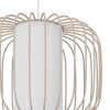 Moderne Pendelleuchte aus sandfarbenem Stahl mit einem weißen Textilzylinder in der Mitte eines Metallschirms. |