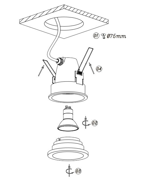 Moderne Einbauleuchte. Das Besondere an dieser Leuchte ist, dass sie dank der höheren Federn für Einbauleuchten mit einer Dicke von bis zu 50 mm geeignet ist – ein Novum bei anderen Herstellern. Hier muss man improvisieren, und wenn Sie eine Einbauleuchte aus Holz oder Styropor mit einer Dicke von ca. 50 mm haben, ist diese Leuchte genau das Richtige für Sie. Beispielsweise mit einer Bodenplatte aus 18 mm + Polystyrol und einer Fassade von 33 mm – kein Problem. Selbstverständlich ist auch eine geringere Dicke ab ca. 15 mm möglich. Die Leuchte besteht aus Aluminium. Sie bietet hohen Schutz gegen Feuchtigkeit und Staubpartikel – IP65. Das Leuchtmittel ist austauschbar. |