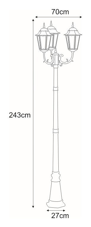 K-7006A2/3 je nádherná venkovní stojací lampa, která je vysoká 243 cm. Díky velkým rozměrům si tento model jistě najde své místo ve velkých zahradách, kde dokonale zvýrazní prostor. Nic však nebrání tomu, aby byla tato lampa umístěna i na menších pozemcích, protože pak by mohla sloužit jako ústřední bod celé úpravy a nahradit menší zdroje světla. Rozměry však nejsou jediným pozoruhodným aspektem svítidla K-7006A2/3, neboť i jeho design je poutavý. Celý design je vytvořen po vzoru klasických městských luceren, od nichž dotyčný model zdědil ornamenty, tvar stínidel a charakteristickou nohu.