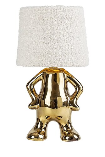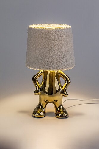Stilvolle Lampen aus Keramik und Textil. Der Keramiksockel ist im Stil einer Figur gestaltet, der Schirm ist aus Schaffellimitat. Passt perfekt in moderne Innenräume sowie in Kinder- oder Studentenzimmer.