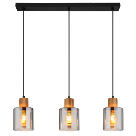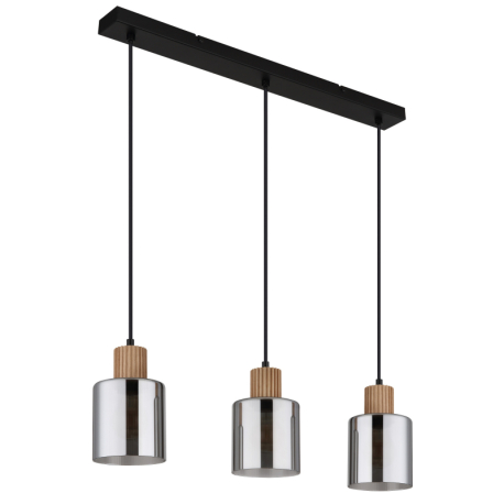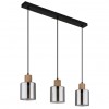 Moderne Lampen aus Metall in Mattschwarz und mit Glasschirmen in Rauchfarbe, ergänzt durch ein hölzernes, braunes Element. Perfekt für Wohnzimmer, Küchen, Esszimmer und Schlafzimmer. Die Lampen werden ohne Leuchtmittel geliefert. Mit E27-Fassung. |