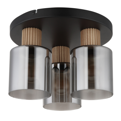 Moderne Lampen aus Metall in Mattschwarz und mit Glasschirmen in Rauchfarbe, ergänzt durch ein hölzernes, braunes Element. Perfekt für Wohnzimmer, Küchen, Esszimmer und Schlafzimmer. Die Lampen werden ohne Leuchtmittel geliefert. Mit E27-Fassung.