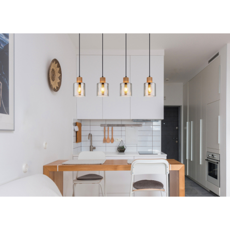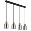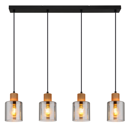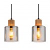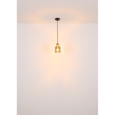 Moderne Lampen aus Metall in Mattschwarz und mit Glasschirmen in Rauchfarbe, ergänzt durch ein hölzernes, braunes Element. Perfekt für Wohnzimmer, Küchen, Esszimmer und Schlafzimmer. Die Lampen werden ohne Leuchtmittel geliefert. Mit E27-Fassung.