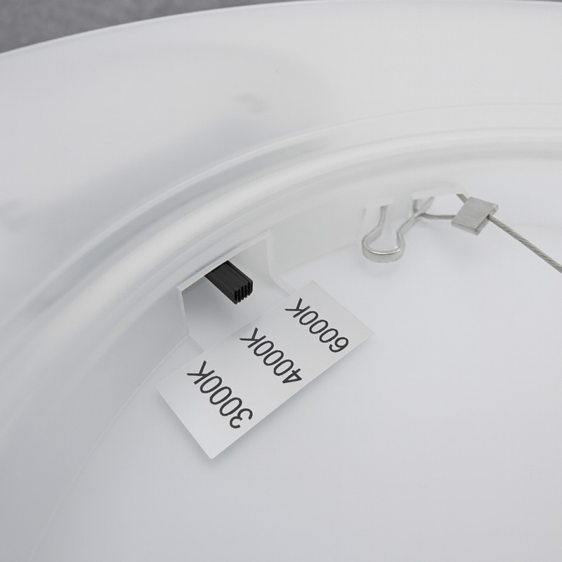 Moderne runde Leuchte aus Kunststoff in Weiß. Dank des Schalters lässt sich die Lichttemperatur auf 3000K/4000K oder 6000K einstellen. Sie verfügt über die Schutzart IP54 und ist somit auch für den Außenbereich geeignet. Die Leuchte unter Nummer 2 und 3 lässt sich durch den Kauf einer Pendelleuchte zu einer eleganten Hängeleuchte umgestalten. |