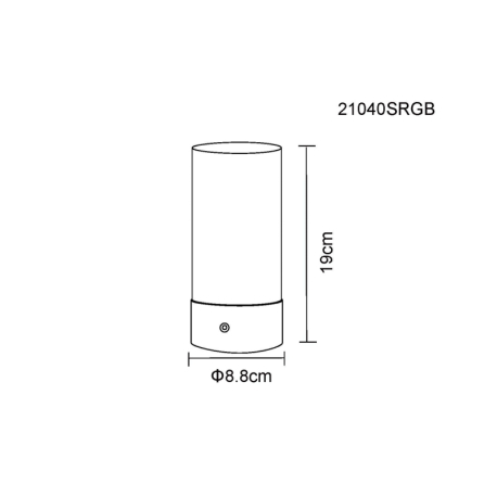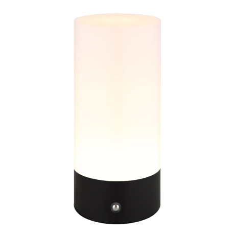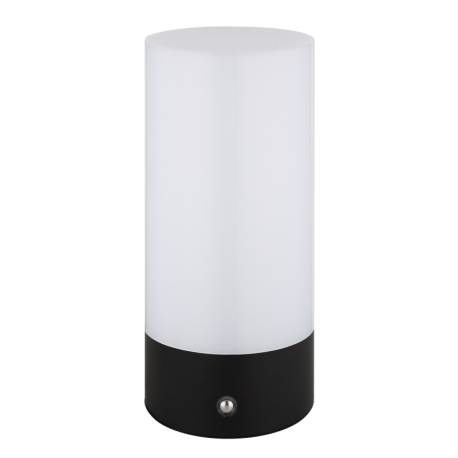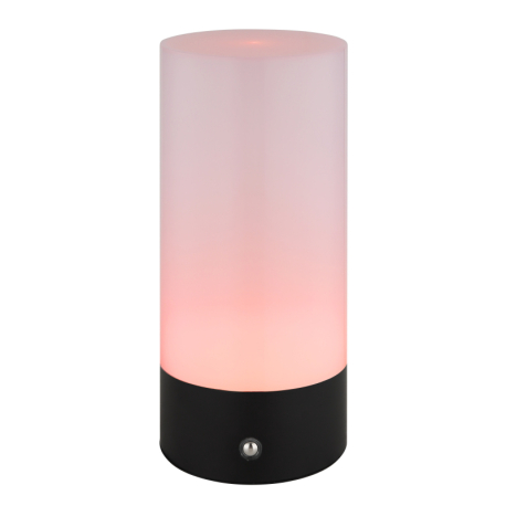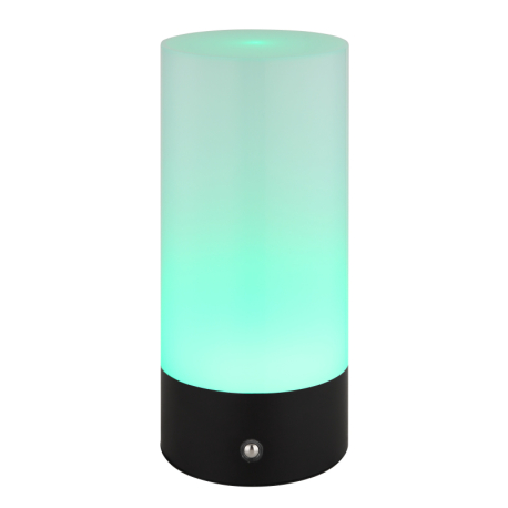 Dekorative Lampe aus Metall und Kunststoff. Sie hat eine zylindrische Form. Dank der Schutzart IP44 können Sie die Lampe auch auf einem Balkon oder einer Terrasse verwenden. Sie verfügt über einen Berührungsschalter und Dimmer sowie RGB-Lichtwechsel.