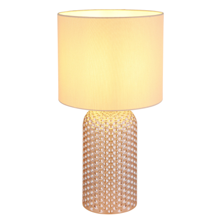 Stilvolle Tischleuchte aus Glas mit Textilschirm. Der Glasfuß der Leuchte ist verziert, was ihr ein interessantes Aussehen verleiht. Sie eignet sich perfekt für Wohnzimmer, Schlafzimmer und Flure, um eine angenehme Atmosphäre zu schaffen. Mit E27-Fassung. Leuchtmittel sind nicht im Lieferumfang enthalten. Kabellänge 130 cm. |