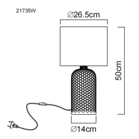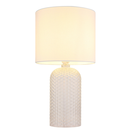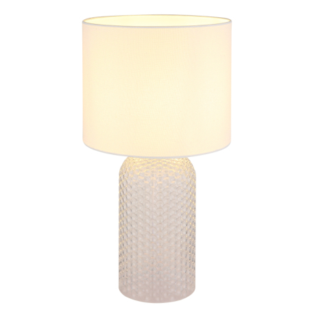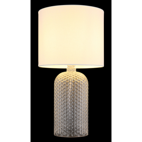 Stilvolle Tischleuchte aus Glas mit Textilschirm. Der Glasfuß der Leuchte ist verziert, was ihr ein interessantes Aussehen verleiht. Sie eignet sich perfekt für Wohnzimmer, Schlafzimmer und Flure, um eine angenehme Atmosphäre zu schaffen. Mit E27-Fassung. Leuchtmittel sind nicht im Lieferumfang enthalten. Kabellänge 130 cm. |