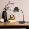 Eine schlichte Tischleuchte aus Metall. Die Leuchte wird ohne Leuchtmittel geliefert. Alternativ können Sie eine intelligente LED-Leuchte erwerben, die Sie über eine App auf Ihrem Smartphone oder Tablet dimmen, die Farbe festlegen oder die Temperatur und Farbe des Lichts ändern können.