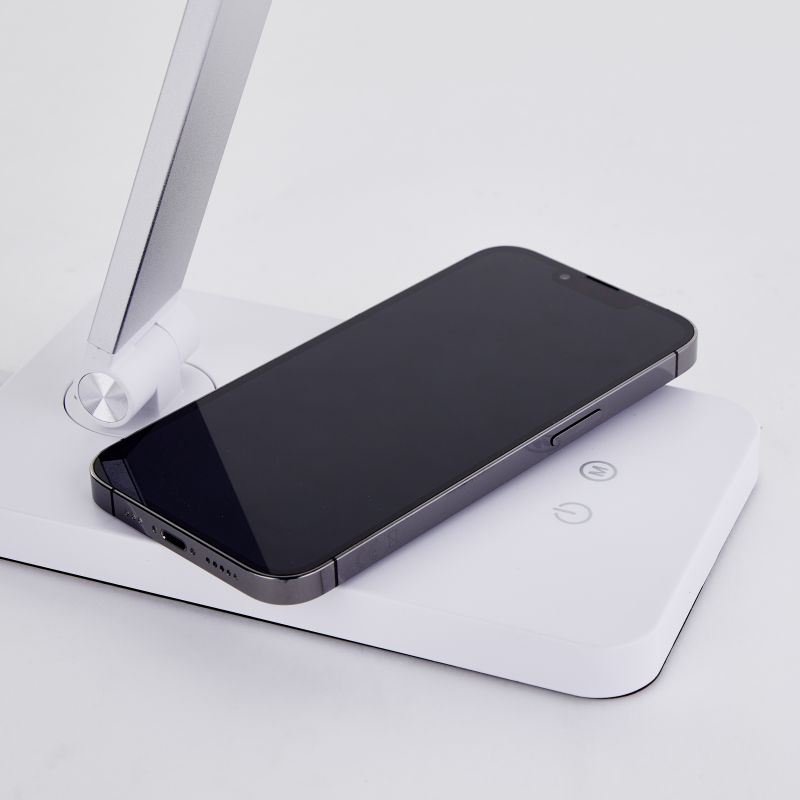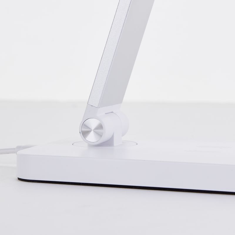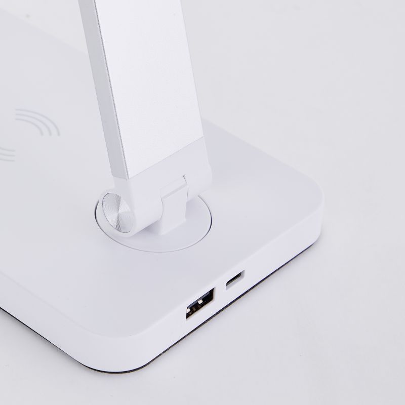 Diese moderne Bürolampe aus Metall und Kunststoff ermöglicht das bequeme kabellose Laden von Smartphones direkt am Lampenfuß oder per USB-Kabel. Dank des Touch-Schalters lässt sich die Helligkeit in drei Stufen regulieren und so optimal an Ihre Bedürfnisse anpassen. Der flexible Lampenkopf erlaubt es Ihnen, das Licht genau dorthin zu richten, wo Sie es benötigen.
