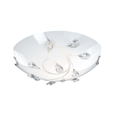 GL-40404-2 Stropní svítidlo, nikl matný, sklo bílé, K5 křišťály průhledné, Ø30cm, V:10cm, bez žárovek 2xE27, max. ILLU 40W 230V. -