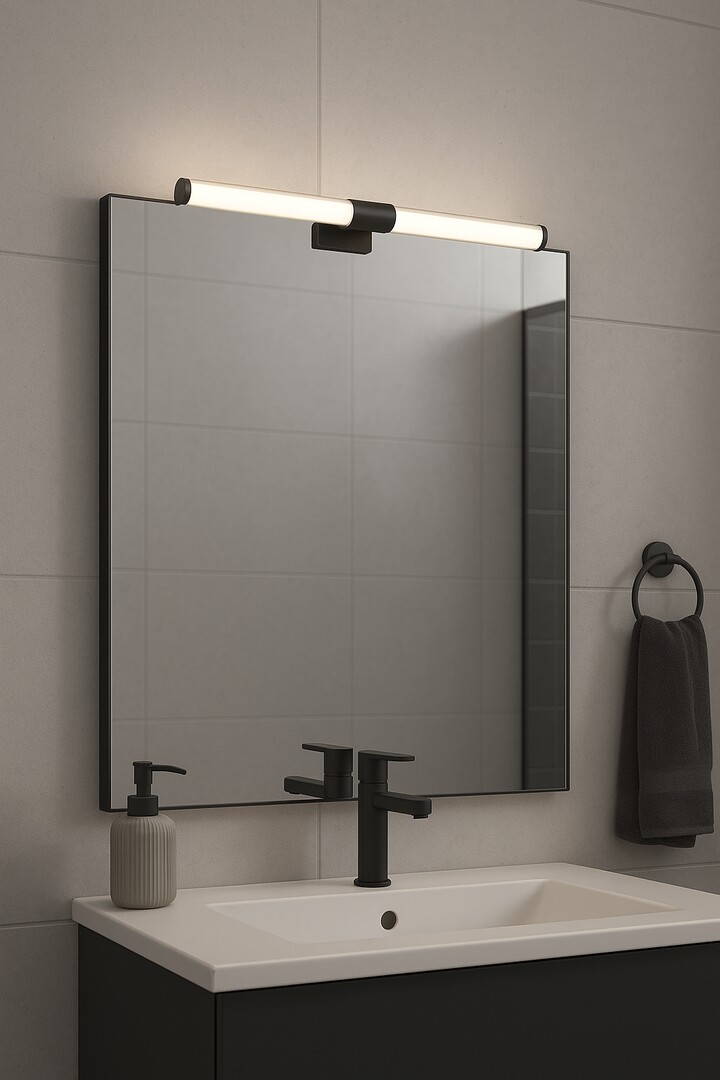 | Koupelnové nástěnné svítidlo Rabalux Zain je doporučeno těm, kteří chtějí doplnit svou moderní koupelnu funkčním osvětlením. Svítidlo nad zrcadlo má krytí IP44, takže je bezpečné pro použití ve vlhkých prostorách. Celá lampa je vyrobena z plastu, se základnou v černé barvě a bílým válcovým stínidlem. Toto praktické svítidlo může být namontováno přímo na zrcadlo, čímž poskytne efektivní pomoc při ranní i večerní hygieně. Nástěnná lampa má zabudovaný LED světelný zdroj, který vyzařuje přirozené bílé světlo a vytváří čistý, moderní efekt. LED technologie zajišťuje energeticky úsporný provoz a dlouhou životnost. | |