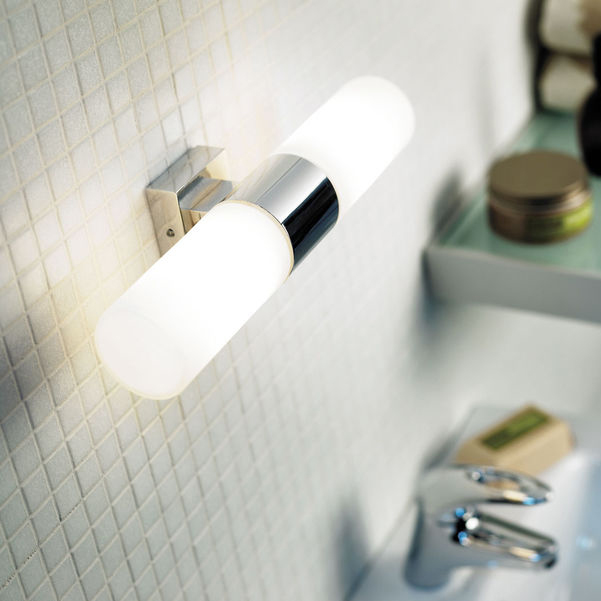| Dvojité nástěnné svítidlo Nordlux Tangens s jednoduchým stínidlem ve tvaru válce z opálového skla na čtvercové základně ve dvou barevných variantách | |