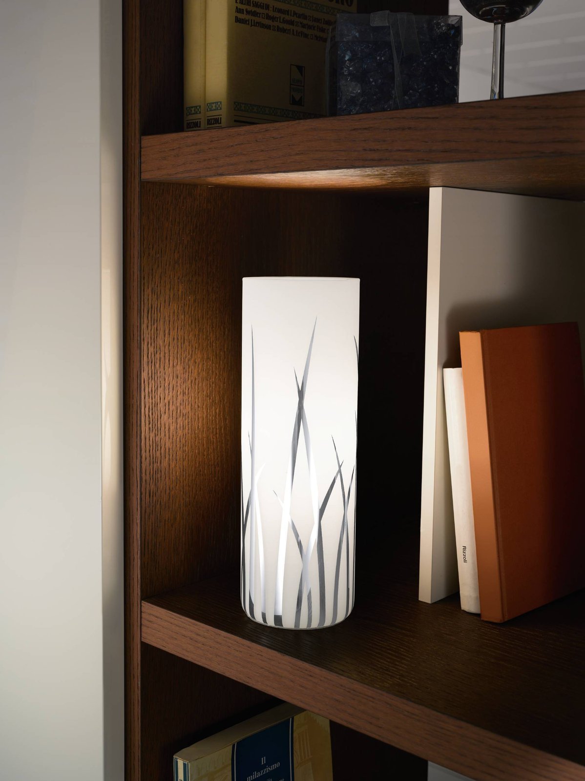 Ein Set Rivato-Lampen aus chromfarbenem Stahl und weißem Glas mit Dekor. Sie werden ein interessantes Element im Wohnzimmer, in der Küche, im Schlafzimmer und im Flur sein. |