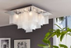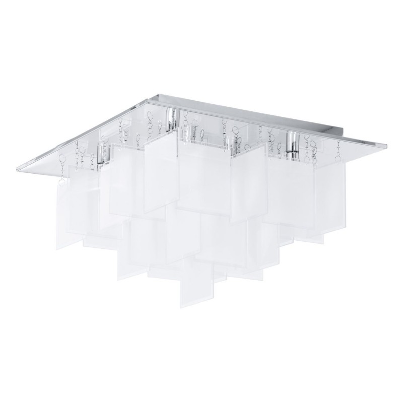 Quadratische Deckenleuchte aus Stahl in der Farbe Chrom und Glas in der Farbe Satinweiß. Wird mit Glühbirnen mit G9-Gewinde geliefert. |