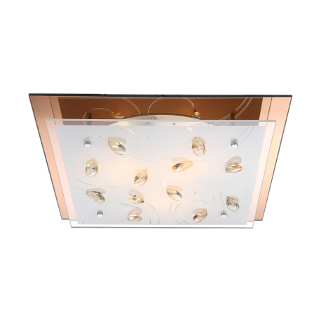 GL-40412-3 Stropní svítidlo, jantar, sklo bílé, K5 křišťály champagne, spodní sklo jantar, Dx?xV: 42x42x9cm, bez žárovek 3xE27, max. ILLU 40W 230V. -