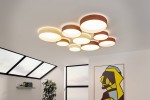 Moderne Deckenleuchten aus Kunststoff und Textil. Es erstrahlt in einem warmweißen Farbton, der für eine angenehme Atmosphäre im Innenraum sorgt. Es ist möglich, mehrere Lampen unterschiedlicher Farbe und Größe im Innenraum zu kombinieren und so ein sehr interessantes Designelement zu schaffen.