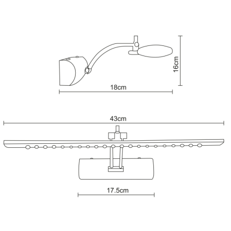 GL-78301 Nástěnné svítidlo, chrom, průhledný akryl, nastavitelné, vypínač, ?xV: 43x16cm, H:18cm, včetně 1xLED 3W 12V, 220lm, 4000K. -
