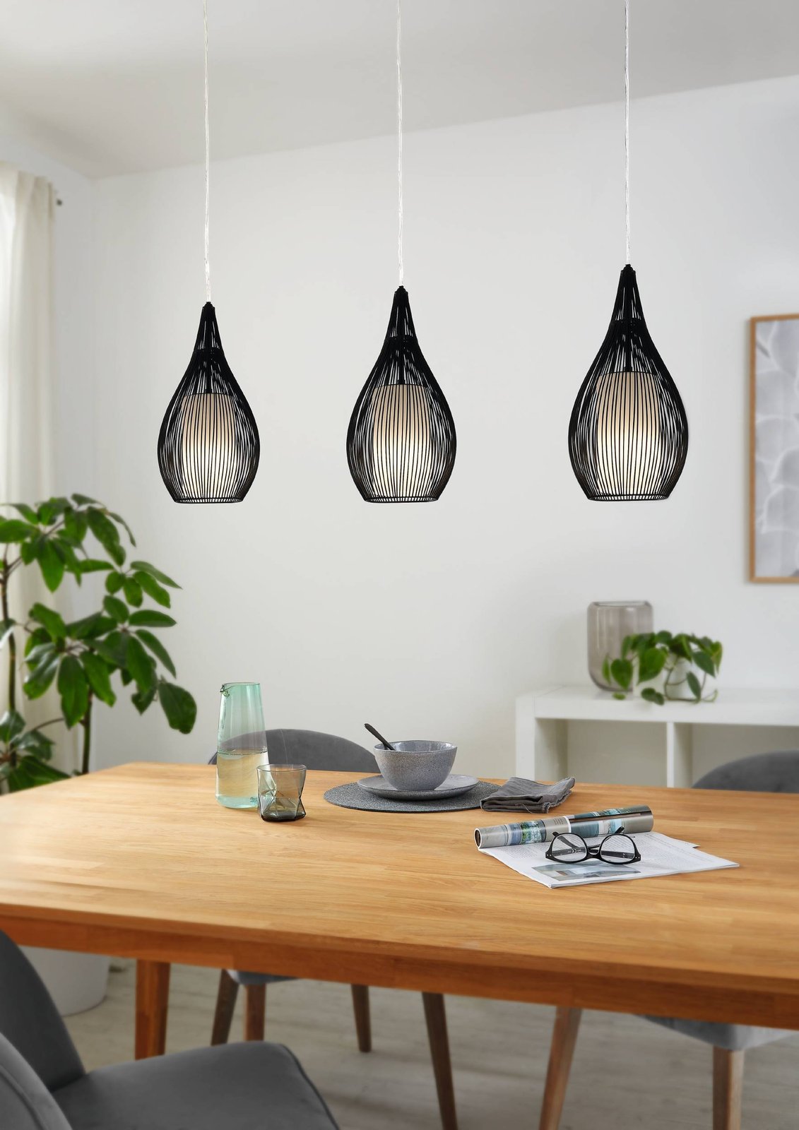 Razoni-Pendelleuchten eignen sich für alle modernen Innenräume. Es eignet sich nicht nur für Küchen und Esszimmer, sondern auch für Wohnzimmer. Der Sockel besteht aus Stahl und der Schirm hat eine interessante Tropfenform aus Stahldrähten und im Inneren des Tropfens befindet sich ein Glaszylinder. Nach dem Anzünden sieht die Lampe sehr effektvoll aus. |