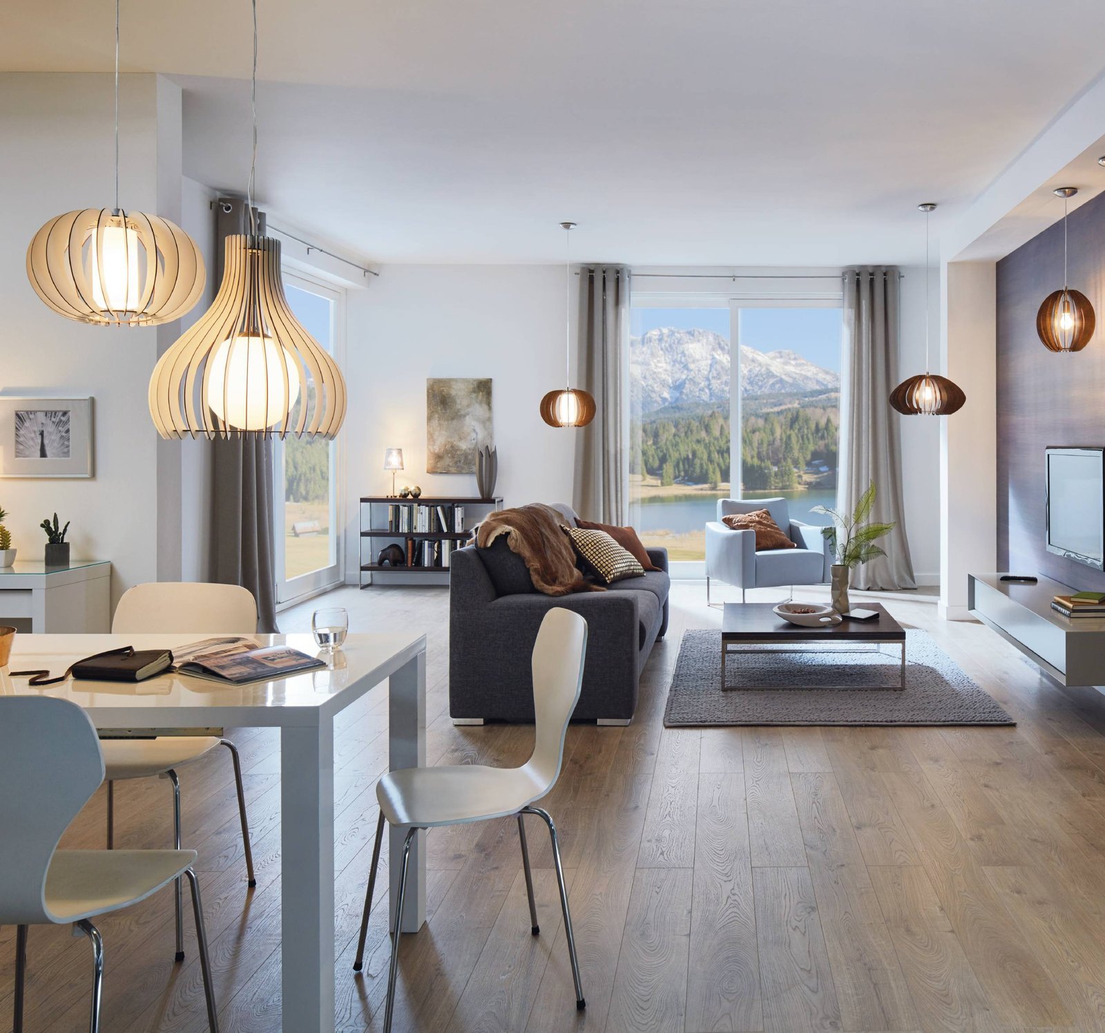 Stilvolle Pendelleuchten, die perfekt in alle modernen Innenräume passen. Sie bestehen aus Stahl in der Farbe Mattnickel und aus Holz in der Farbe Ahorn. Sie werden nicht nur im Wohnzimmer, sondern auch in der Küche und im Esszimmer ein tolles Element sein.