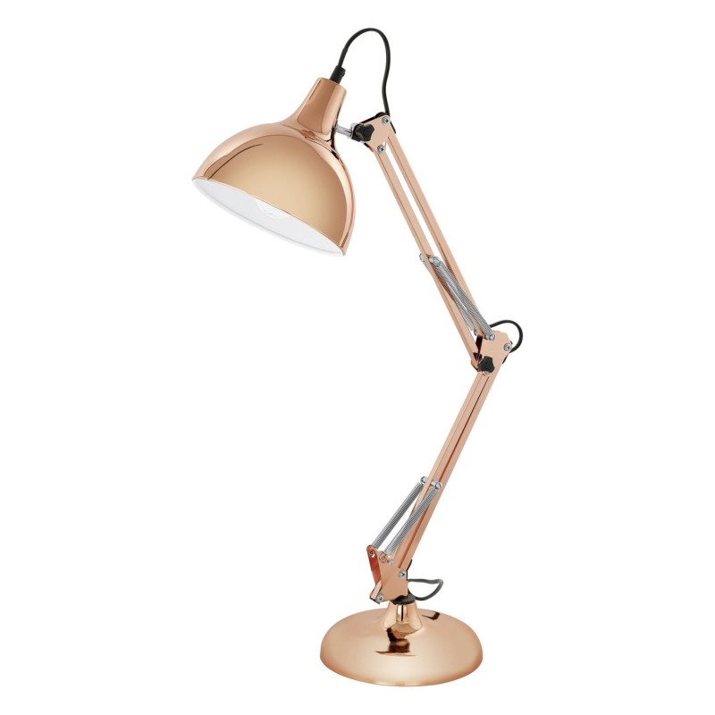 Die zeitlose Tischleuchte ist aus Stahl gefertigt. Dank drei Gelenken können Sie ihn genau dorthin drehen, wo Sie strahlen möchten.