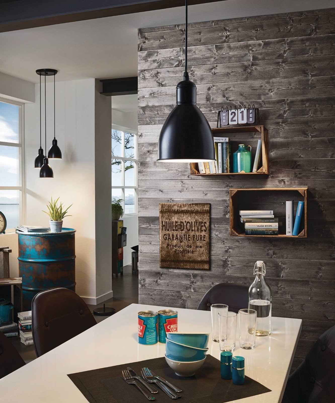 Priddy sind Lampen, die für Innenräume im Vintage- oder Industriestil geeignet sind. Der Sockel und die Außenseite des Lampenschirms bestehen aus Stahl in Schwarz und die Innenseite des Lampenschirms ist weiß.