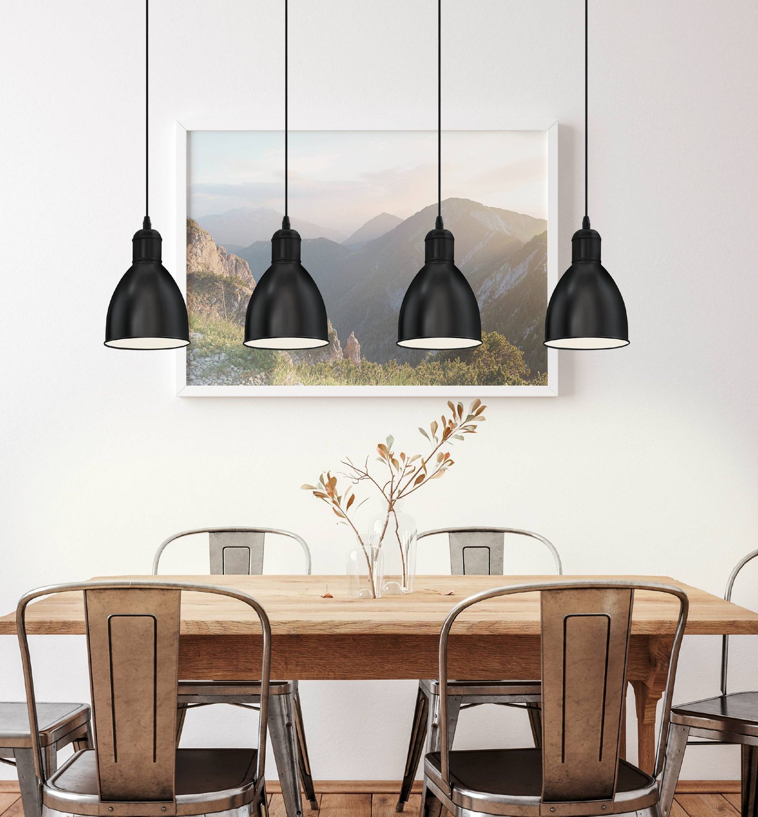 Priddy sind Lampen, die für Innenräume im Vintage- oder Industriestil geeignet sind. Der Sockel und die Außenseite des Lampenschirms bestehen aus Stahl in Schwarz und die Innenseite des Lampenschirms ist weiß.