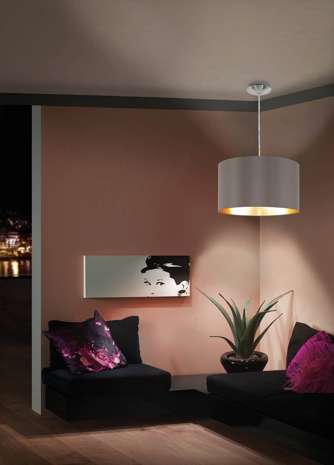 Moderne Lampen aus Stahl in der Farbe Nickel matt und Lampenschirme aus Textil in den Farben Cappuccino und Gold. Sie eignen sich für alle Wohnräume in Ihrem Interieur. Es besteht die Möglichkeit, sie mit einer smarten LED-Glühbirne auszustatten und sie per Smartphone-App zu dimmen oder die Temperatur und Farbe der Beleuchtung zu ändern. |