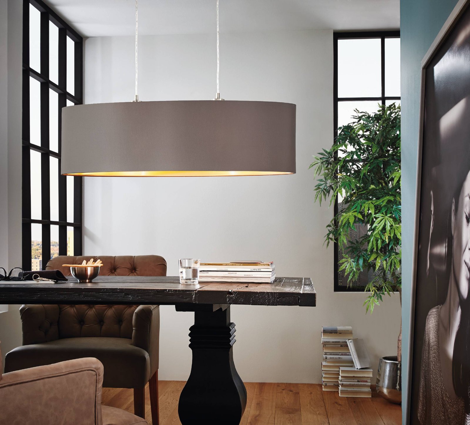 Moderne Lampen aus Stahl in der Farbe Nickel matt und Lampenschirme aus Textil in den Farben Cappuccino und Gold. Sie eignen sich für alle Wohnräume in Ihrem Interieur. Es besteht die Möglichkeit, sie mit einer smarten LED-Glühbirne auszustatten und sie per Smartphone-App zu dimmen oder die Temperatur und Farbe der Beleuchtung zu ändern. |