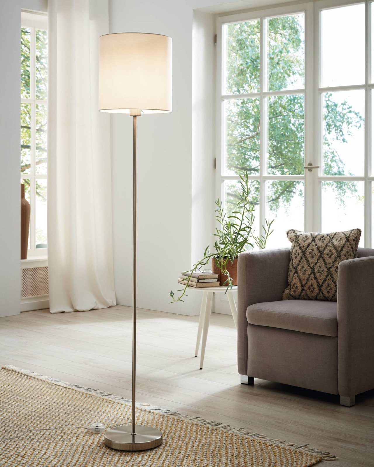 Moderne Leuchten aus Metall in Nickel matt und Textil in weiß. Das Pasteri Set besteht aus Fallen, Lampen, Kronleuchtern und Wandleuchten, so dass Sie eine komplette Einrichtung erreichen. |