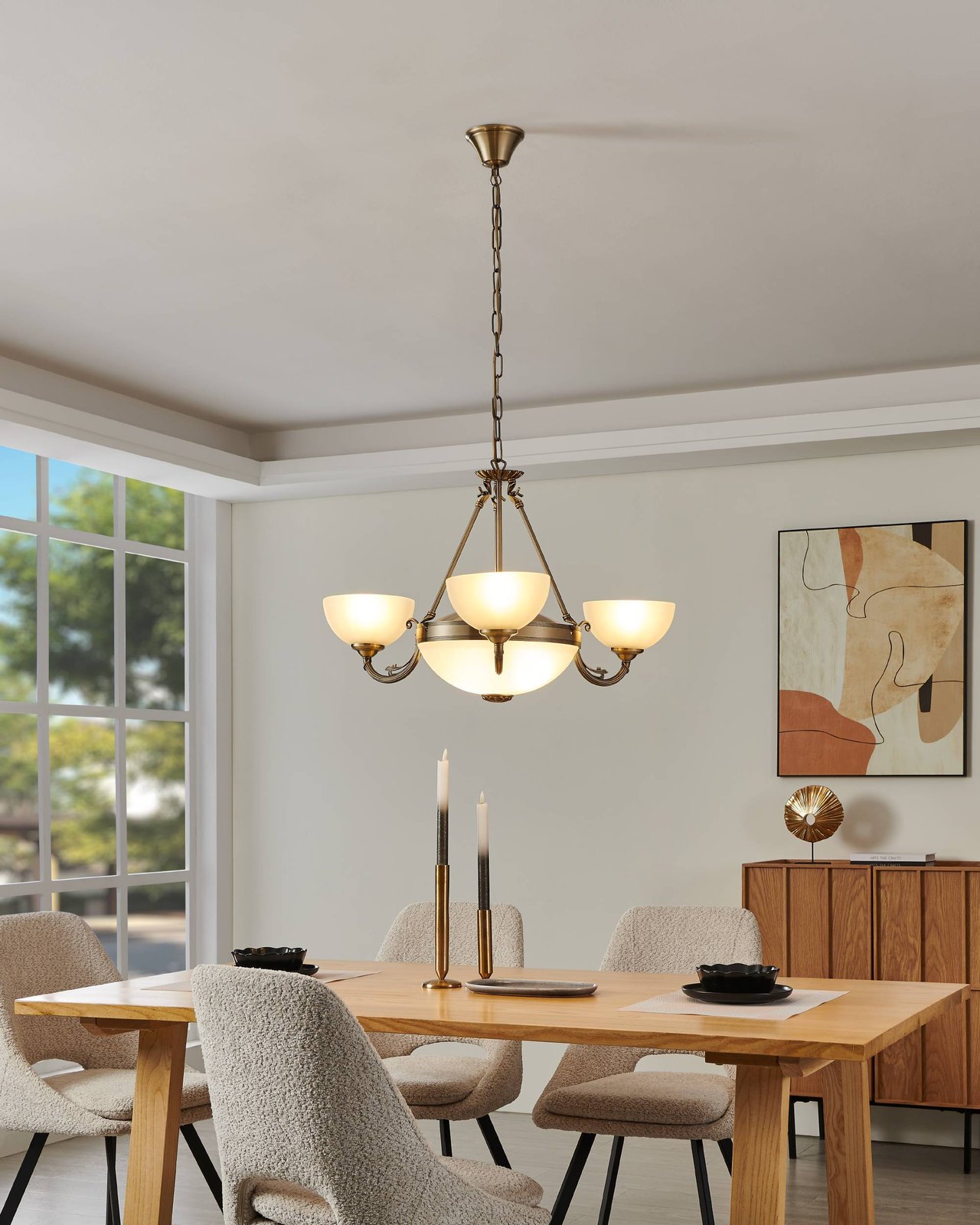 Die Savoy-Lampen sind im klassischen Stil aus bronzefarbenem Metall und weißem Glas gefertigt. Es eignet sich für Wohnzimmer, Schlafzimmer, Küchen, Esszimmer, Flure und Flure. |