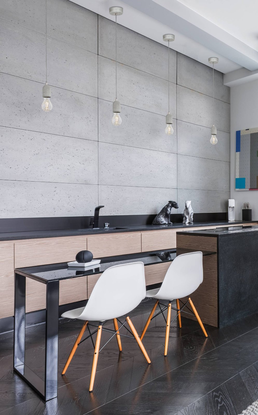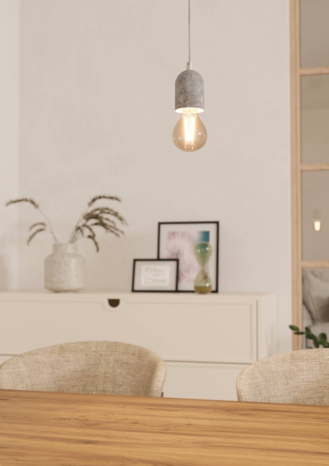 Hängelampen aus Stahl und Beton in grauer Farbe. Es passt in Vintage-Interieurs. |