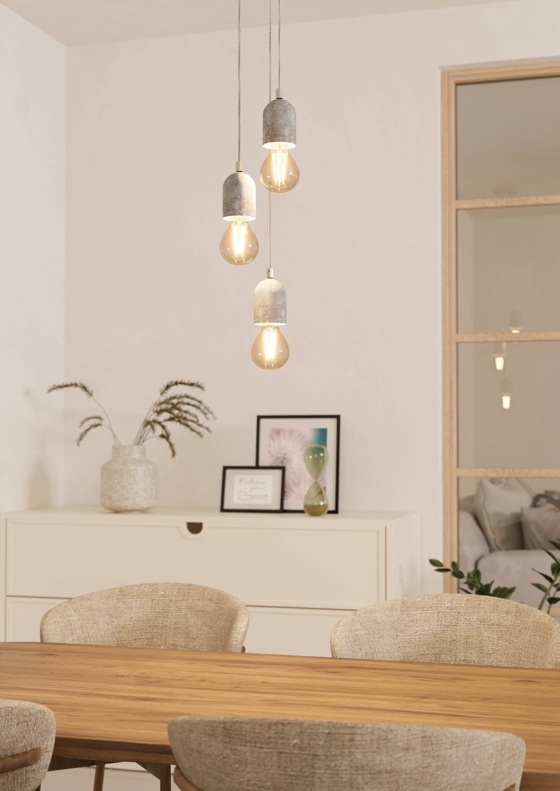 Hängelampen aus Stahl und Beton in grauer Farbe. Es passt in Vintage-Interieurs. |