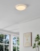 Runde Decken- oder Wandleuchten in weißer Farbe mit Dekor. Sie bestehen aus Stahl und Glas. Es ist möglich, sie in Wohnzimmern, Schlafzimmern, Büros, Fluren und Fluren zu installieren. Die LED-Quelle ist austauschbar und nicht dimmbar. Es leuchtet in einer warmweißen Farbe.