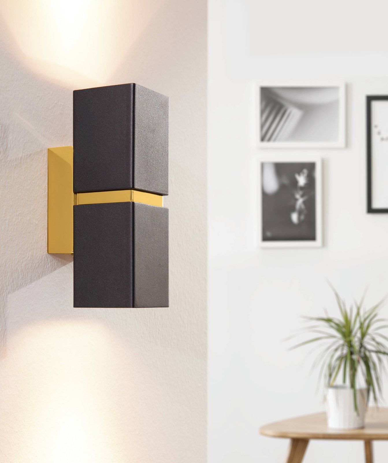 Moderne Wandleuchten eignen sich zur Beleuchtung von Fluren, Fluren, aber auch Wohnzimmern usw. Sie sind aus Stahl gefertigt. Es leuchtet auf und ab, was im beleuchteten Zustand sehr effektvoll aussieht. Die Lampen werden mit Leuchtmitteln mit GU10-Fassung geliefert, die in einem warmweißen Farbton leuchten. Es ist jedoch möglich, intelligente LED-Leuchtmittel zu erwerben und die Leuchtmittel zu dimmen und die Temperatur und Farbe der Beleuchtung über eine App auf Ihrem Smartphone zu ändern. |