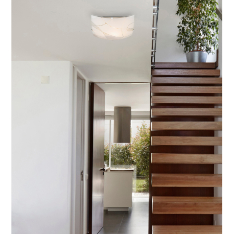 GL-40403-1 Stropní svítidlo, kov bílý, chrom, satinované sklo, ozdobné linky, Dx?xV: 25x25x6cm, bez žárovky 1xE27, max. 60W 230V ILLU. -