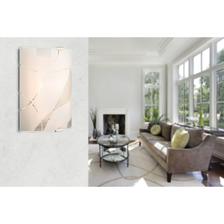GL-40403W2 Nástěnné svítidlo, kov bílý, chrom, satinované sklo, ozdobné linky, Dx?: 22x23cm, H:7cm, bez žárovky 1xE27, max. 60W 230V ILLU. -