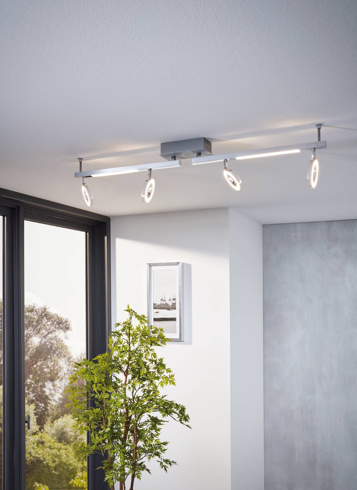 Cardillio 1 LED sind interessante Strahler, die für moderne Innenräume geeignet sind. Sie bestehen aus Aluminium und Stahl in Chromfarbe kombiniert mit mattem Nickel. Die Kunststoffteile der Lampe sind weiß. Die einzelnen Leuchtenköpfe sind neigbar, sodass Sie das Licht dorthin streuen können, wo Sie es benötigen.