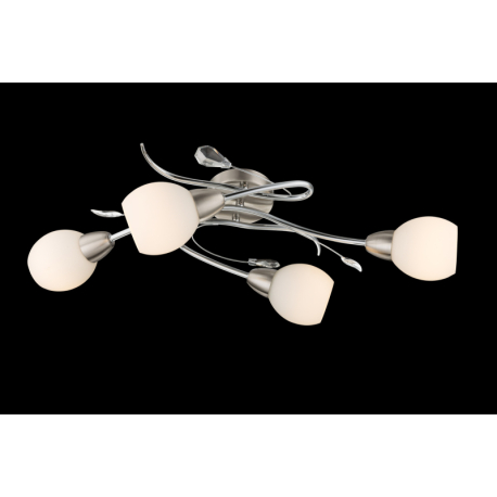 GL-60209-4 Stropní svítidlo, kov, nikl matný, chrom, sklo bílé, akrylové křišťály, Dx?xV: 70x25x21cm, bez žárovek 4xE14, max. 40W 230V. -